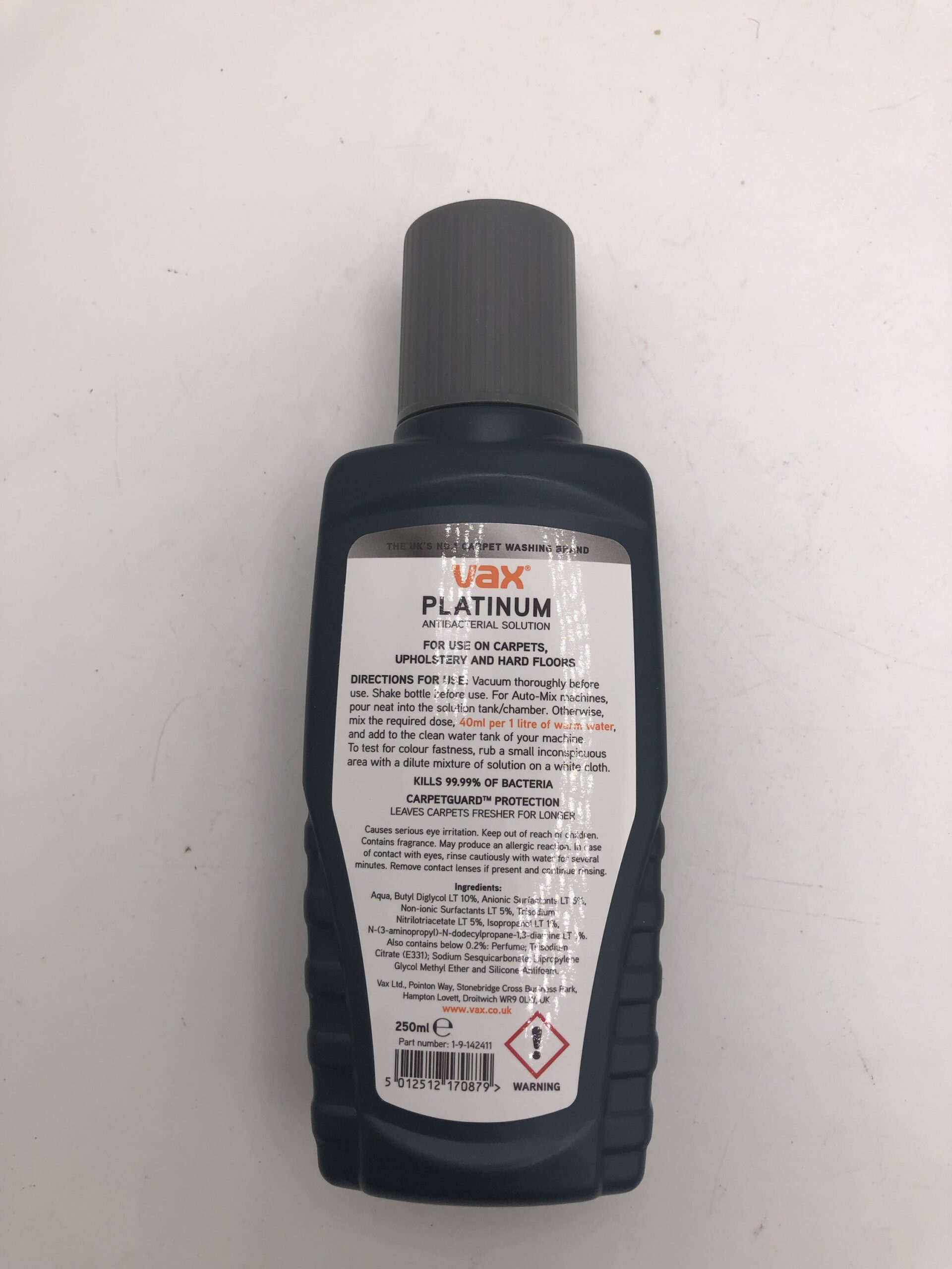 Vax Platinum Antibacterial Solution 250ml